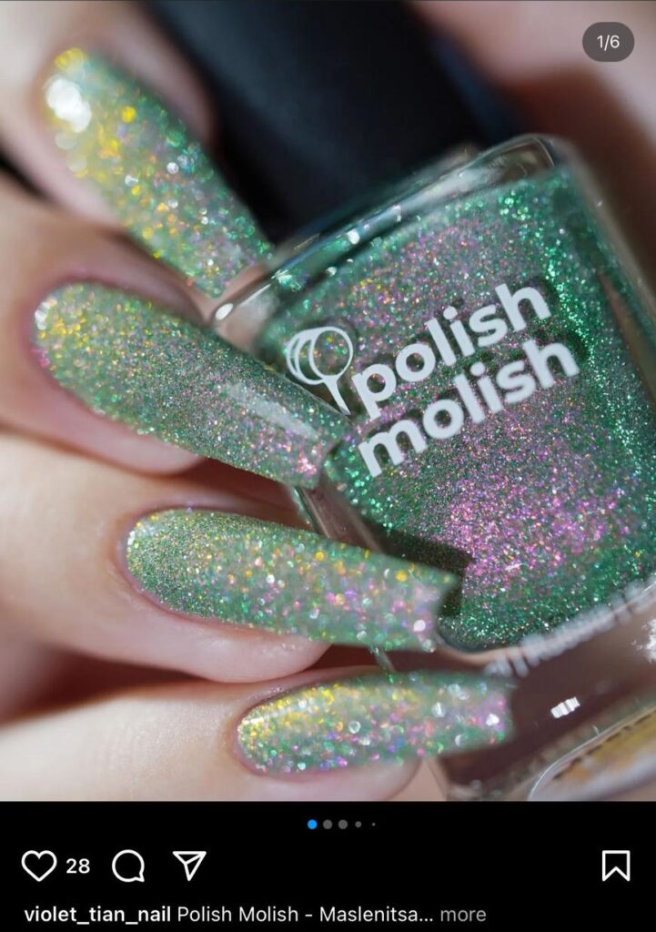 طراحیهایی با رنگ سبز هولوگرافیک و درخشان مانند طرحی از violet_tian_nail، میتواند به خوبی جادوی تغییر فصل را به نمایش بگذارد. این لاک با شاین چندبعدی خود، درخشش اولین پرتوهای خورشید بهاری بر روی برگهای تازه را تداعی میکند. همچنین، لاک سبز تیره هولوگرافیک از emilydemolly با ریزدانههای اکلیلی نقرهای، انتخابی عالی برای نشان دادن حس نو شدن و حال و هوای روز سنت پاتریک است.